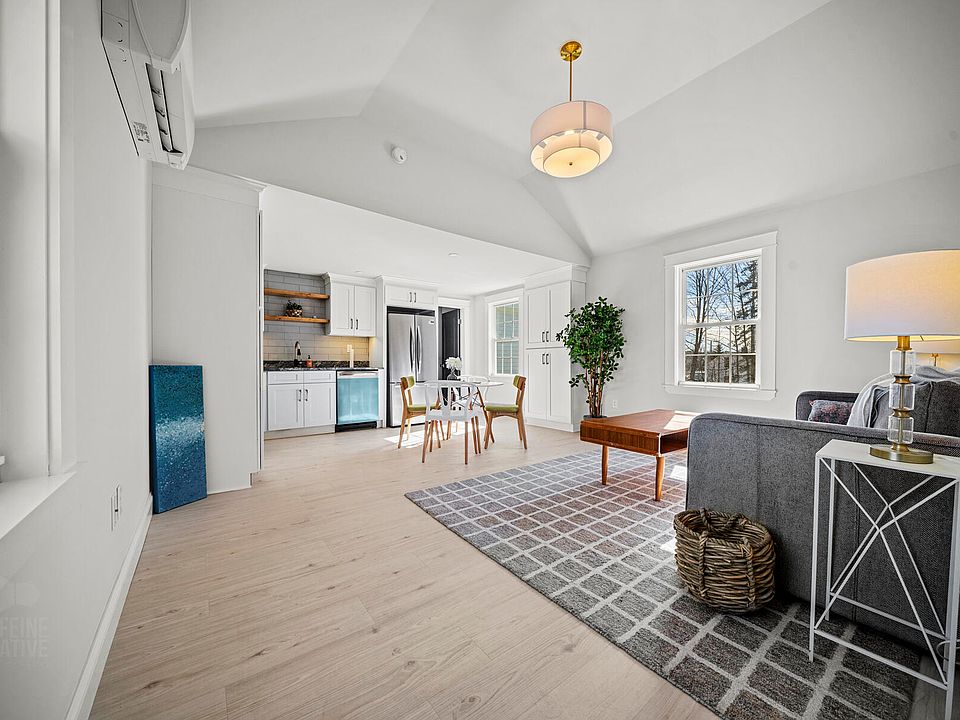 This bright and airy second floor condo with 2 en suite bedrooms will surprise! The central open-concept living area is so inviting with the perfect balance of coziness and lightness created by the cathedral ceiling and new kitchen. Beautiful tile baths, a Romeo & Juliette Balcony off primary bedroom, and washer/dryer area make this easy to move-into. The highly walkable location is a 5-10 minute walk to all of Freeport Village's shopping and dining. In Southern Maine, Freeport is perfectly situated 20 minutes north of Portland and 20 minutes south of Midcoast. Includes 2 deeded off-street parking spaces.