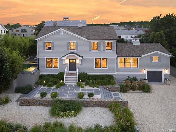 Sitting pretty on Westports coveted Saugatuck Island, this stunning home is a media darling, featured in New England Home, Rooms, Fairfield County Home and the Huffington Post. The home was completely rebuilt in 2013 and elevated to be FEMA compliant. Every element is custom designedfrom the home theater w/ 90" screen to the striking master bath. Beneath a cathedral ceiling, the sun-drenched gourmet kitchen features quartz counters & high-end appliances. Walls of windows overlook the zen backyard oasis with patio, outdoor FP, heated saltwater pool/spa & gardens offering complete privacy. Solar panels, radiant-heated floors & other eco-friendly features create a home that is equal parts gorgeous & green. Enjoy a resort lifestyle all year long in this small waterfront community with access to a private beach and boat launch.