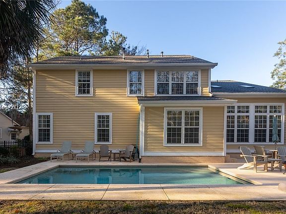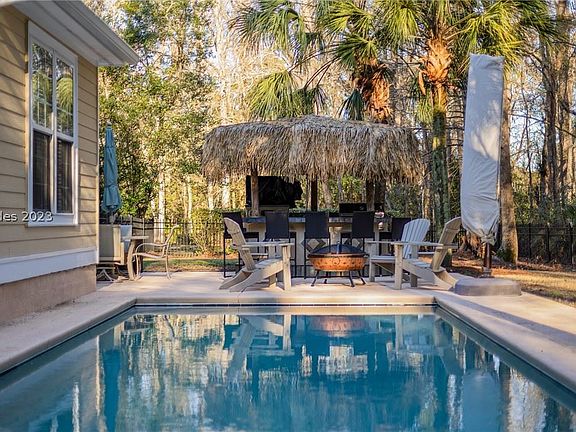 Former model home, this 4BR home plus bonus room AND office has plenty of space and features a first-floor ensuite with large walk-in closet and bath with separate tub. From the moment you enter, you'll be able to see the upgrades including crown molding, coffered ceilings, dual staircases, and wainscoting but the real treasure is outside. Fully fenced-in backyard with a pool and tiki hut that backs up to protected space. This is one of the largest backyards in Island West! Located on a cul-de-sac, this home has a great location in the community. Golf, restaurant, pool- what's not to love about Island West? Ask about the $5,000 Seller credit!