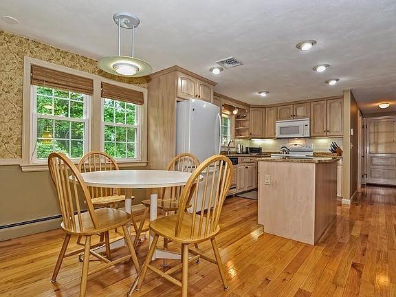 Hip Roof Colonial Home. The first floor offers an updated eat in Kitchen with newer cabinets, granite counters, double pantry, center island and recessed lighting. The Living and Dining Rooms are spacious and sized for entertaining, the Dining Room boasts a fireplace. There is a first floor Den or Office as well as a half Bath with a pedestal sink. Hardwood stairs lead to the second floor where you will find 4 comfortable sized Bedrooms.The Master has a private Master Bath. You will love the hardwood flooring throughout this home. The Lower Level is partially finished and offers laundry and storage. Outside you will find a one car Garage, breezeway and a beautifully landscaped yard. This home has had many updates over recent years including Roof, Windows, Central Air, Heating System, Electric, Kitchen and more. Located in a desirable neighborhood in North Milford just minutes to Route 495 and the Hopkinton town line. Showings start at 1st Open House on 9/14 from 12:00 -1:30.
