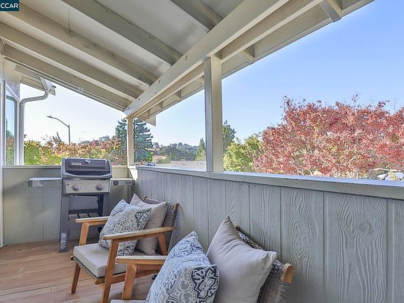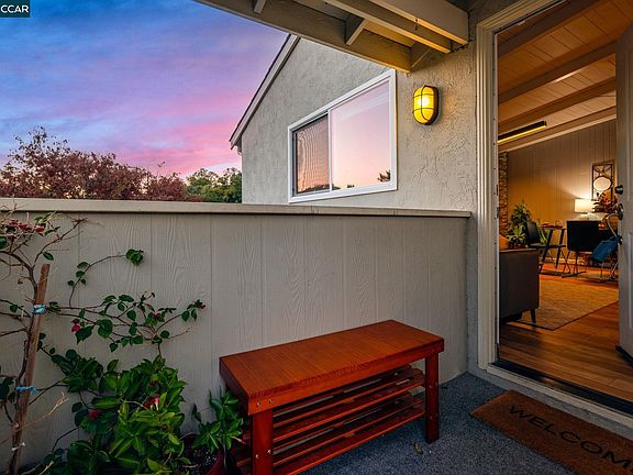 This fabulous stand alone home offers the privacy of a single-family home with the amenities of townhome living! Feel like you are at the top of the world, nestled in the treetops! The mid-century modern esthetic compliments the open floor plan features soaring wood-beamed vaulted ceilings and a gorgeous, stacked stone fireplace with wood mantel. The home chef will love the modern kitchen with stylish two-toned cabinets, stainless steel appliances, and sleek quartz countertops. Preparing culinary delights is a breeze! Unwind at the end of the day in the primary oasis including a luxurious ensuite with a large vanity, step-in shower with glass enclosure and a walk-in closet. Well-appointed secondary bedroom and adjacent updated full bath. There’s even a bonus space--ideal for a nursery, office or even a third bedroom. Got pets? Enjoy the convenience of the portable dog run right off the deck! Right down the street from Paso Nodal Dog Park and great hiking trails! Two-car garage. Pool and clubhouse. Conveniently located on the 12th hole in tranquil Golf Ridge in Pleasant Hill near highly-rated Mt. Diablo schools including Valhalla Elementary, shopping, transportation, parks, hiking, and the best of the East Bay. Welcome home! Broker's tour cancelled.