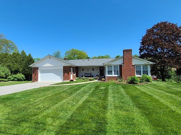 OPEN HOUSE SUNDAY JULY 10, 2022 12NOON-2PM !! Expansive Brick Ranch in desirable area features many upgrades and fine details !! Roof replaced 2years ago (architectural roof shingles 1 layer), new kitchen with granite counters and stainless appliances (GE refrigerator 1 year old), induction stove with convection oven, open kitchen/dining room, replacement windows, spacious master bedroom with half bath, hardwood floors, fireplace in living room, new tub surround and sink in main bathroom, Central A/C(not currently working), 2 car garage, nice front porch, the basement is unfinished with a walk out but there is a room with a fireplace that was finished at one time, so much potential to create finished space, workshop or play area ! New Hot water tank in 2021. Gorgeous yard with shade trees and fire pit! You won't find a larger ranch for the money !! QUICK CLOSING POSSIBLE !!