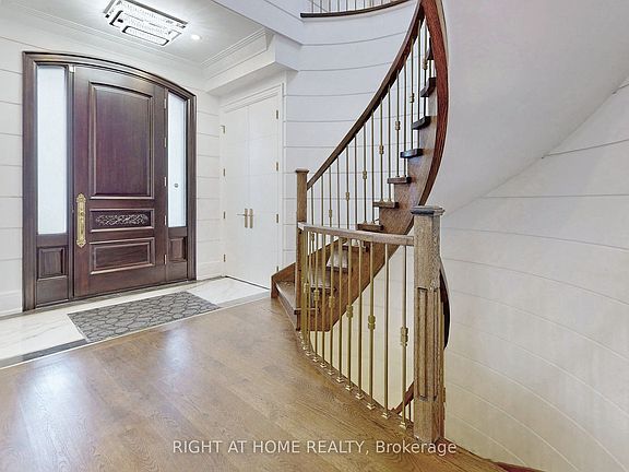 This exceptional custom-built executive residence, located in the heart of Don Mills, offers a perfect blend of elegance and everyday comfort. With approximately 5,300 sq. ft. of thoughtfully designed living space, it is an ideal sanctuary for modern family living and sophisticated entertaining. Upon entering, you are greeted by a grand foyer with soaring ceilings and exquisite millwork, setting the tone for the entire home. The seamless flow leads to generously sized principal rooms, with 10-foot ceilings on the main floor and 9-foot ceilings on the second level. Rich materials and fine craftsmanship adorn every corner of this home, creating a sense of both sophistication and warmth. At the heart of the home lies a chef's dream kitchen featuring custom walnut cabinetry, high-end appliances, and a contemporary design that is both functional and visually striking. Whether hosting elegant dinner parties or preparing meals for the family, this kitchen is designed to impress. The luxurious primary suite offers a spa-inspired ensuite bath with heated floors, providing a personal retreat for relaxation. Additional features include a main-floor office, perfect for quiet workdays, and a lower-level walk-up with rough-ins for a home theatre, sauna, and space ideal for a nanny or in-law suite. Every detail of this residence reflects quality, from the custom stone and brick exterior to the carefully chosen fixtures and finishes. Located in one of Toronto's most desirable neighbourhoods, this home is just steps from the Shops at Don Mills, offering upscale dining, boutique shopping, and everyday conveniences. Nearby parks, good schools, the Don Mills Trail, and Edwards Gardens further enhance the lifestyle offered by this exceptional property. More than just a home, it's a lifestyle defined by comfort, elegance, and convenience.
