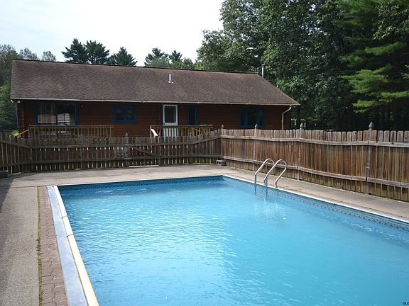 Your very own Log Cabin nestled in the neighborhood. Enjoy taking a swim in the pool or just relaxing on the back deck. This home features 3-bedrooms, 1-bathroom, very large living room, dining area, ceramic and laminate floors, large basement with bilco door, basketball hoop w/paved court, newer roof shingles, 3-sheds all sitting on just under an acre of land.