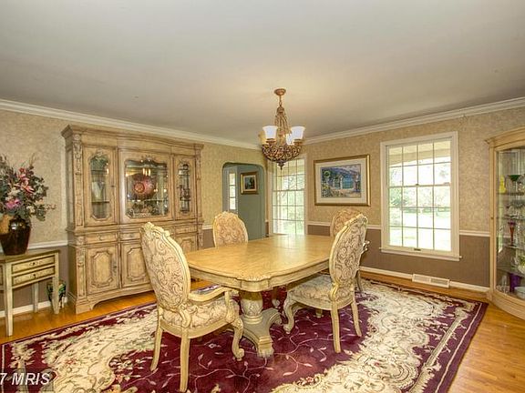 Beautiful 5 bd 3 ba home on rolling 2+acre fields. Kitchen with custom cabinetry, granite counter tops and stainless steel appliances. Spacious rooms with crown molding, chair rails, wainscoting, ample built in storage in basement. Wonderful sun filled sun room off family room opens to outdoor deck and fenced in yard. Great location in secluded cul de sac and blue ribbon schools.