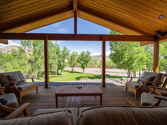 • Exterior Features: Acreage Fenced, Corrals, Deck, Garden, Horse Property, Irrigated, Landscaping, Loafing Shed, Mountain View, Patio, RV Parking, Sprinklers, Storage Building, Hunting, Fishing, Barn, Wooded Acreage, Production Ground, Guest House, Shop, River Frontage, Covered Deck, River Access