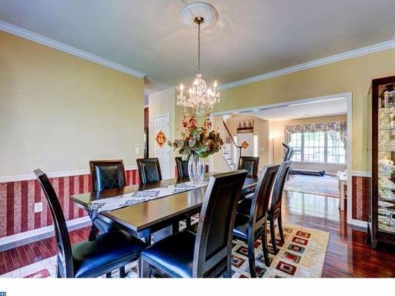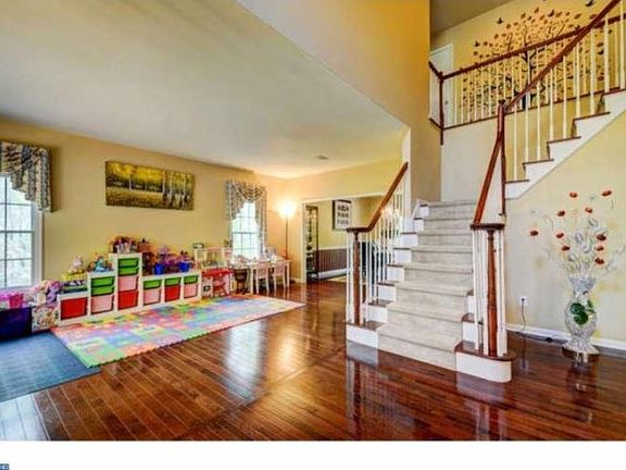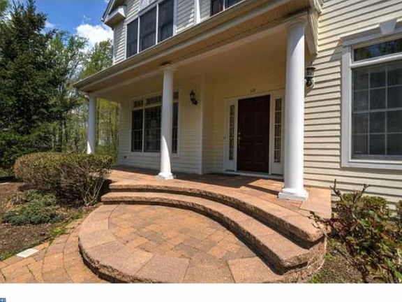 A RARE FIND 5 bedroom home in prestigious Cherry Valley, sitting at the end of a cul-de-sac and nestled on an amazing wooded lot. The park-like setting is enhanced by extensive multi-tiered paver patios, newer exterior painting (2013), walkways, upgraded lighting & professional landscaping with a sprinkler system. The inviting home features a two-story foyer, Hardwood floors throughout (newer hardwood floor for living room, family room and upper levels in 2013), 1st Floor library with double French doors, a generous living room, & large laundry/mud room with custom built-in wall organizer,cabinets, sink and pantry. The kitchen-flanked by a formal dining room with crown molding & grand family room with marble fireplace-boasts Corian counters, cherry cabinets, double wall oven and panoramic views of the private back yard. The finished basement carpet was replaced with new wood-like laminate floor (2014) offers endless opportunities & also features an exercise room with pocket French doors & "Dance-Step" flooring. The 2nd floor has newer hardwood floor (2013). Master suite has two walk-in closets and garden tub.Four additional generous bedrooms and bathroom with double vanities finishes upper level. This home offers curb appeal galore with its welcoming front porch, over-sized side-entry garage, all framed by towering trees.Close to Princeton and at top-rated Montgomery school district.