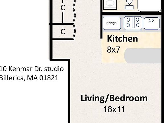 NO Broker Fee and Available on March 15th. Fully renovated cozy 1st floor studio located in 10 Kenmar Dr., well-managed, on-site full service condominium community in Billerica, MA. Conveniently near I-495, I-95, I-93 and U.S. Route 3. Extra attic storage. Washer and Dryer in the same building close by and pool for hot summer days! Off-street parking for two cars. New stainless steel fridge and range provided. Granite counter top with stainless steel sink. Rent includes heat, hot water, sewer, trash, lawn and snow removal and you pay just electricity and cable/internet. Cats (no more than 2) allowed with $40 monthly pet fee required. One-year standard lease. First, last and security deposit (equals to one month's rent) required. Rental insurance required. Showing for qualified candidates (3x income, minimal 600 credit score, no history of eviction and crime) only.