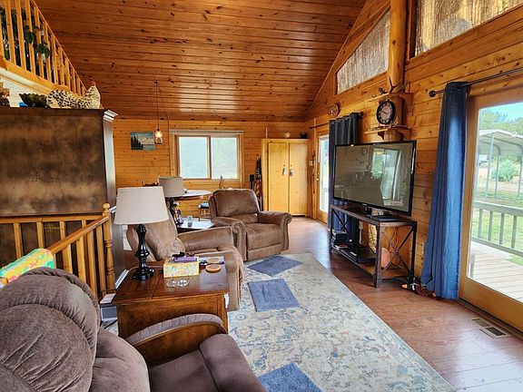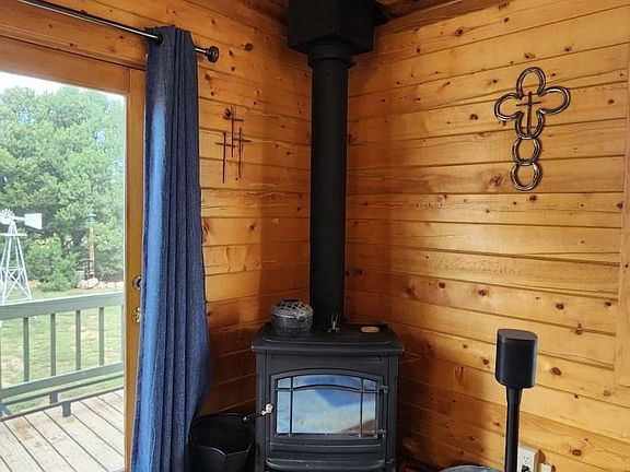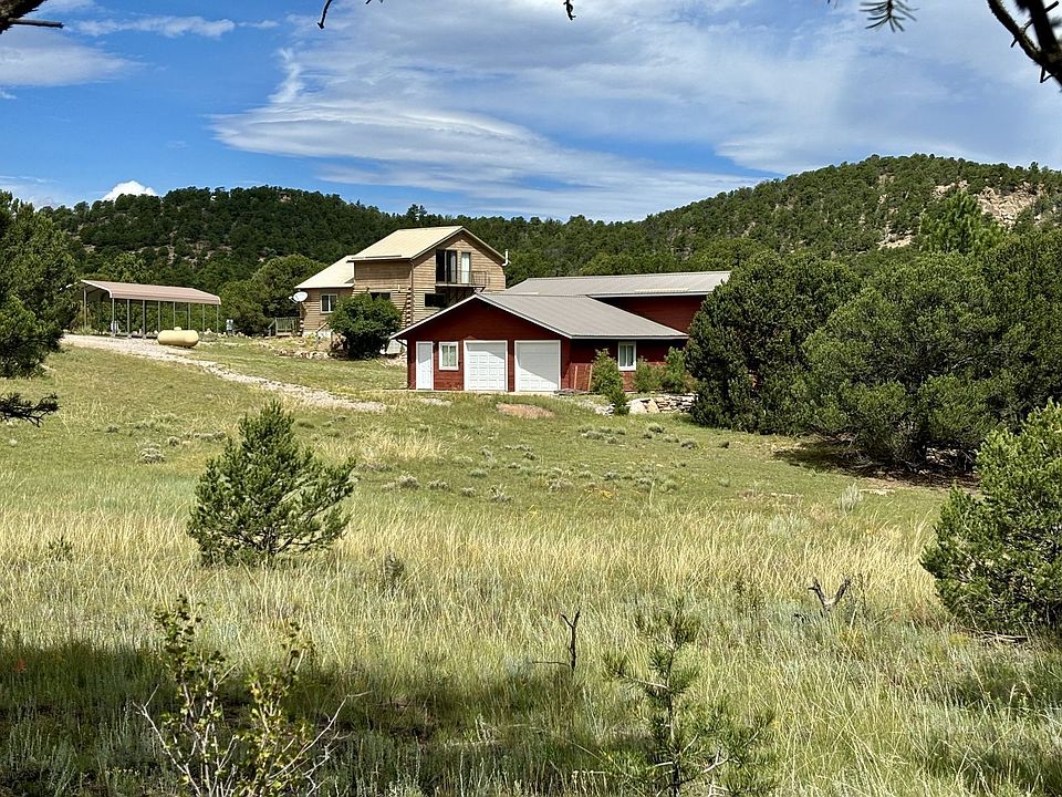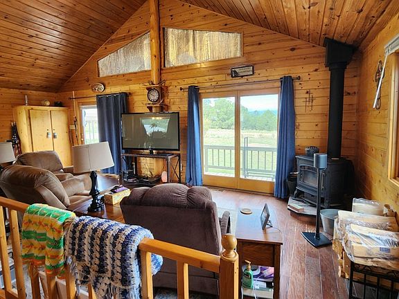 M&TC21 Cabin and RV Garage & Workshop. Looking for a full time or get-away home out of the city in quiet peaceful setting? Here is a cabin with a garage with tall RV parking, an additional two car garage, and separate workshop room. There is also a 144 sq ft crafts shed with power, a 2 car covered carport and the propane tank is owned and included. The great room has large windows and freestanding wood stove. The kitchen has nice appliances and a big window with a view. The loft bedroom includes a 1/2 bath and private deck. The lower walkout level has a family room, utility room, non-conforming bedroom and 3/4 bathroom. Beautiful golden wood ceilings throughout. An additional 5.11 acres next to this cabin is also for sale for an additional price. The corner of this lot touches 631 acres of Colorado State Trust land. Lots of room to play outside and lots of room to store your toys. Come home to the mountains and relax. Furniture included! Measurements of structures and flagging of the corners of the lot are estimates; buyer to verify.