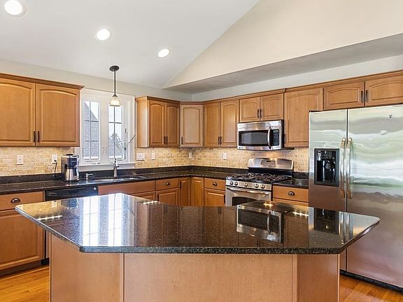 - Kit Dscrp: Flooring - Hardwood, Countertops - Stone/Granite/Solid, Ceiling - Cathedral, Kitchen Island, Stainless Steel Appliances, Open Floor Plan