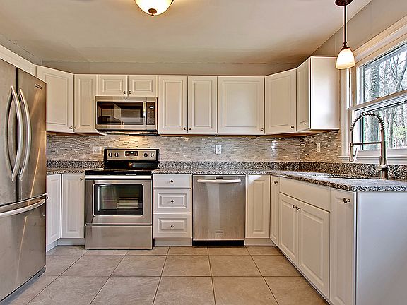 ** BACK ON THE MARKET - BUYER COULD NOT GET THEIR MORTGAGE. ** QUIET BEAUTIFUL WATER VIEWS! DOUBLE LOT! LAKE RIGHTS w/ DOCK ACCESS for boat. This ranch home offers the opportunity you've been waiting for - one level living - relax & enjoy your new life! GORGEOUS NEW KITCHEN w granite counters, new cabinets, stainless appliances, dishwasher. OPEN FLOOR PLAN w/3 nice size bedrooms. NEW 2nd Bedroom, NEW gas furnace w/hot water on demand, NEW water softener. Newly finished walk-out Basement w/New flooring! Access to side 2 car attached Garage. Quiet street perfect location to relax & get away from it all, yet minutes from Rt 80 / NJTransit Train to NYC. Features include reclaimed brick front walkway and patio, rear Deck, fenced Yard. Deeded Dock access