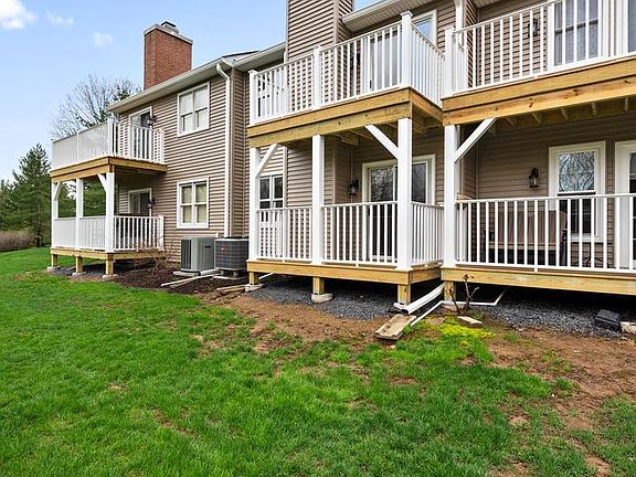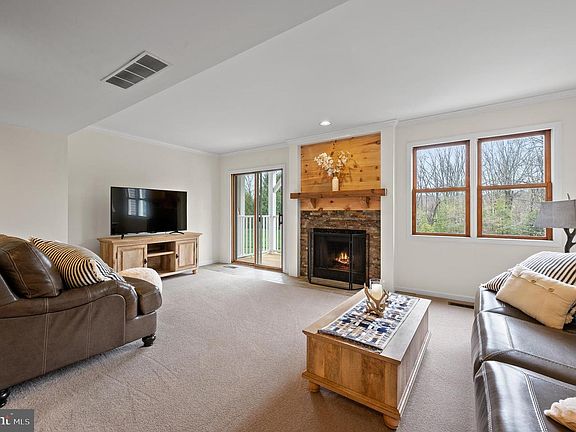 Cozy Townhome in the desirable low-maintenance community of Charing Cross. Just minutes from the heart of Doylestown with it's historical sites, restaurants, and shops! Convenient to major routes such as 313, 611, and 202. The home backs up to the community's common area with open views of the walking trails and woods. Eat-in Kitchen features stainless steel appliances, peninsula with counter seating, and pass thru into living room to allow for natural light. Living Room has been freshly painted and carpeted and showcases a wood burning brick fireplace with natural wood accent, and access to one of the two decks the home has to offer. Upstairs includes a full size washer and dryer closet and two bedrooms. First Bedroom has a private bathroom with soaking tub, walk-in closet, and a sliding glass door to the second floor deck. Second Bedroom has private bathroom, dual closets, and sitting area with an abundance of natural light. Basement is unfinished and has tons of room for storage! One car garage and two car driveway parking complete this home! Recent updates: Kitchen Appliances 2017, Roof Approx. 2018, Decks 2020. HOA covers: Exterior Building Maintenance, Common Area Maintenance, Trash and Recycling, Lawn Maintenance, Snow Removal- Streets, Driveway Apron (not driveway), Sidewalks, and Walking Trails.
