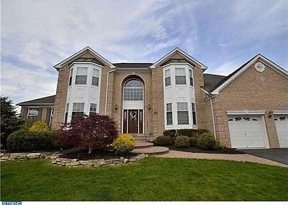 This grand colonial, with streaming sun light, is nestled on a beautiful cul-de-sac backing to open space. Enter this elegant brick front home with dramatic two story foyer with grand circular staircase. Formal living room adjacent to additional conservatory room plus first floor guest suite with full bath. Family room with gas fire place, surrounded by marble, has a cathedral ceiling. Gourmet kitchen with 42 inch cherry cabinets, corian counter tops, center island, built-in microwave and oven. Adjoining sunroom leads to brick patio overlooking the open space. The master suite has sitting area, tray ceiling and luxurious bathroom. Full basement with carpeting throughout with bilco door to walk-out. Professionally landscaped with sprinkler system plus 2 zone heating and A/C. Convenient location to Turnpike and easy access to new shopping center. 1 year home warranty included. You don't want to miss this Gem!