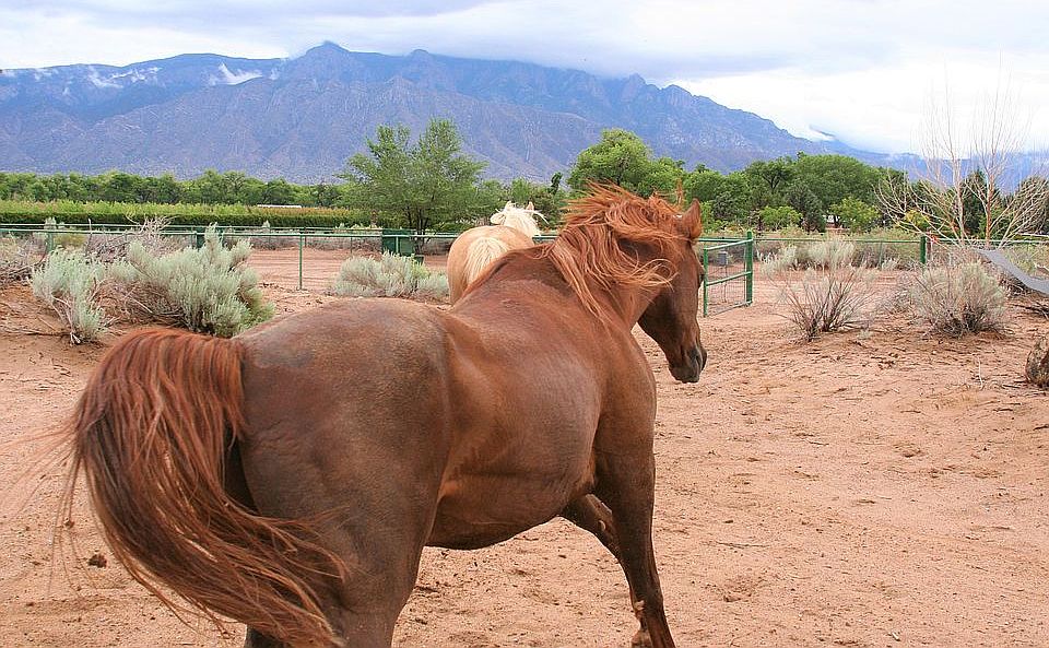 Amazing view of mountains, 100x200 horse arena, fully fenced, corner of Koontz rd and Corrales rd Owner financing available min 10% down must qualify.