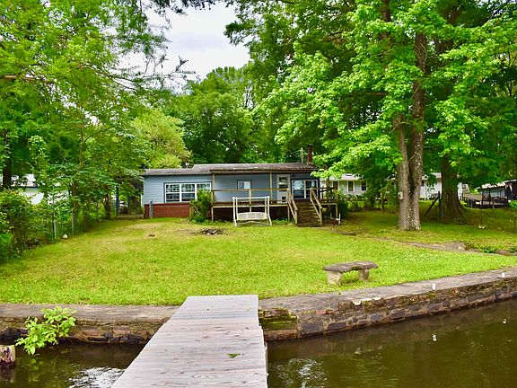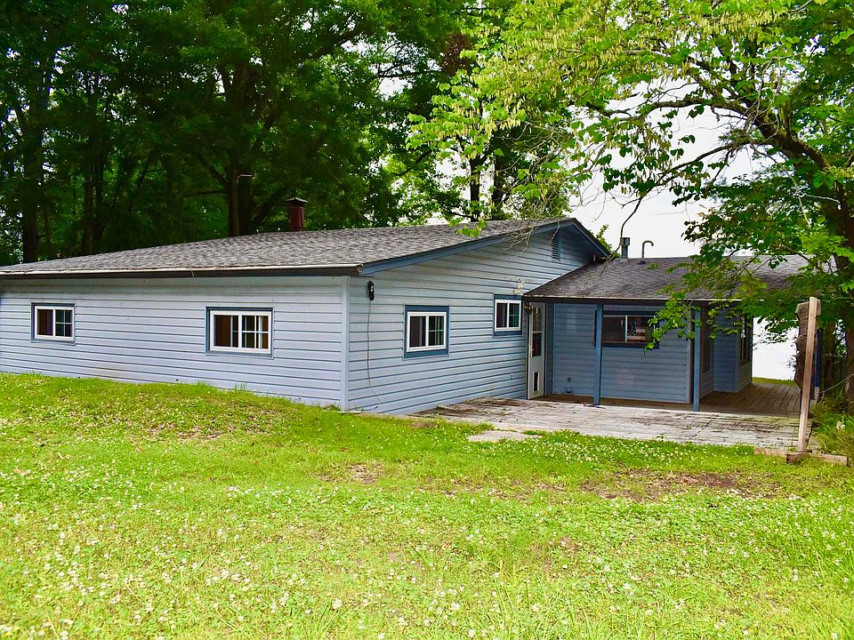 Great opportunity to walk out your door and be on the lake. Wood dock and small concrete boat slip. Sit on your back deck and enjoy endless days of relaxation. HVAC 2023, roof 2020, pex water lines 2018, kitchen redone 2015. Windows replaced 2014. Extra-long 2 car detached garage built 2014. Large living room with fireplace looks over back yard and lake. Eating area in kitchen also looks over back yard and lake. Small office or storage room. 3 bedrooms and 1 bath. Oversize laundry room. Additional outside storage building. Pole security light on property. Home being SOLD AS IS. See Property Disclosure