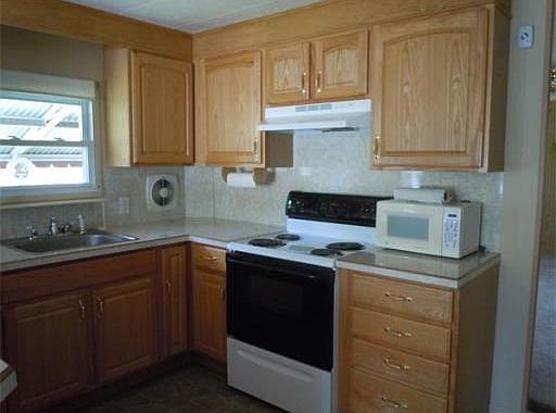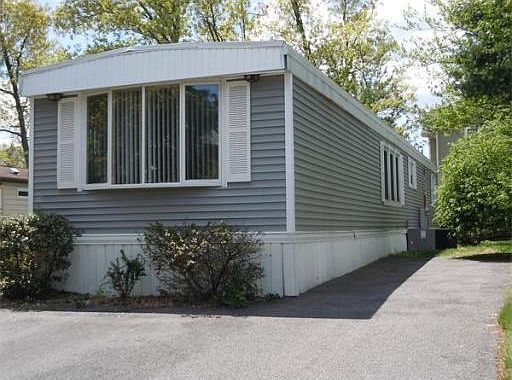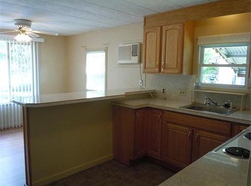 This lovely 5 room, 2 bedroom, 14x66 mobile is located in the beautiful Eastwood Estates Senior Park. Spacious living room w/lots of windows & newer berber carpet. Kitchen, w/newer cabinets, a breakfast bar, lots of built-ins & storage & includes refrigerator & newer stove is open to dining room w/bow window, laminate floor, built-in cabinets & breakfast bar. Nice size master bedroom w/2 double closets, built-ins/w/desk, lots of windows, berber carpet & connecting door to the bath. 2nd bedroom also has a double closet. Convenient laundry closet w/washer & gas dryer included. Gas heat, central air, newer roof & mostly replacement windows, covered patio & storage shed.
