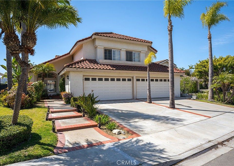 Here is your dream house project that you've been waiting for...5 bedrooms plus bonus room, 4 CAR GARAGE on lot with no one behind it just lush trees and facing the canyon and sunsets. This plan 5 Palisades tract home is great shape as is but it could be ready for your new flooring, paint, kitchen and baths revamp. Its a great home that has been very well cared for including re-piped with PEX Plumbing throughout! High ceilings, curved staircase, main floor bedroom and high ceilings in almost every room! Rare 4 car floor plan is the largest in the tract and Landing is a great street with a cul-de-sac so vey few cars driving by. Primary bedroom is very spacious and has room for a sitting area or easily space to add a deck off the back. The primary bathroom offers both a shower and oval tub and a large walk-in closet. There are even the high ceilings and high windows in the primary bath, ideal for natural light. 5 of the 6 rooms also have the same high ceilings. Kitchen and family are open concept and offer great space and a cozy fireplace as the center piece. Traditional brick hardscape of brick trimmed steps invite guests to the front double doors. Giant driveway has planted palm trees for that great Southern California vibe. Location is key with great trails for whatever activities you enjoy including a path that is tunneled all the way to the sand of Salt Creek beach (never needing to cross any streets) Close to Dana Point Harbor, Laguna Beach and Chapparosa Park, Ocean Ranch Shopping Ctr. and Cinepolis Theater, this home is ready for you!