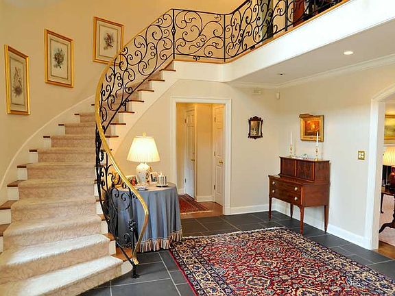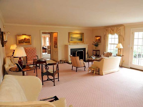 TASTEFULLY RENOVATED & IMPROVED BY CURRENT OWNERS W/GRACEFUL ARCHWAYS, POCKET DOORS, BAY WINDOWS & WINDOW SEATS, IMPRESSIVE 2 STORY ENTRANCE HALL W/BEAUTIFUL CIRCULAR STAIRCASE, LR W/FRENCH DOORS TO TERRACE, MAHOGANY PANALED LIBRARY, DR & FAMILY ROOM (WETBAR) ALL HAVE VIEWS OF PRIVATE PROPERTY. PARTY SIZED KITCHEN. PERFECT ONE FLOOR LIVING. LARGE OFFICE & 3 LARGE BDRMS ON 2ND FLR WITH EASY EXPANSION IF NEEDED. ENTRANCE IS ON MOORELAND RD. PROPERTY CONTIGUOUS TO CONSERVATION LAND.