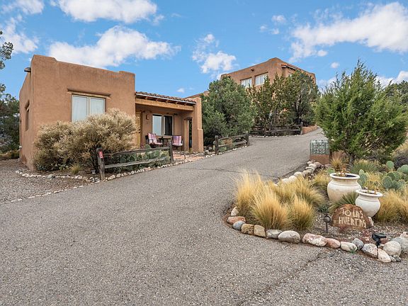 Hand-crafted adobe charm meets stunning Placitas scenery! This beautifully crafted adobe home features a grand entry with a soaring ceiling. Beautiful southwestern charm throughout with nichos, vigas, tongue-and-grove and three wood-burning Kiva fireplaces. Italian tile floors add both durability and Southwest character. An oversized garage offers ample storage and workspace. This property includes a 600sf casita perfect for visitors, hobby or added flexibility. The casita is currently used as a registered Airbnb, generating additional income. Enjoy multiple outdoor living spaces perfect for relaxing, entertaining, or soaking in the natural surroundings. Spectacular mountain and sunset views from this serene Placitas setting, where authentic craftsmanship and natural beauty come together