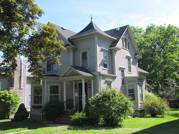 Colonial with 4 possible 5 brms and 2 full baths. Large living room, dining room with built-in, first floor laundry, full walk up attic. Lots of storage room, new siding and new roof in 2009. 2 stairways front and back. New 2013 gas furnace. New custom made wood blinds in living room. Refinished English Oak floors. New low maintence siding, gutters, storm windows and new front and back porch . New Roof 2009. Plenty of growing room. Quiet street. 1.5 detached garage/barn with second floor. Some appliances stay, Enclosed porch and open porch.