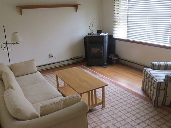 Wonderful three bedroom home in a great location on a quiet street. This 1000 plus square foot ranch features a nice sized living room with a pellet stove. It has an upgraded kitchen that overlooks a large private backyard. The large backyard has a attractive outbuilding for storage and a worktable. There is also a beautiful less than 4 year old kiln shed that the seller would love to continue to rent or lease. Minutes to downtown shops, restaurants and the library. Hardwood and tile floors and a partially finished basement are some of the features. There are leased solar panels that can be transferred to the new buyer. The former tenants have been paying $99.67 per month.A must see!