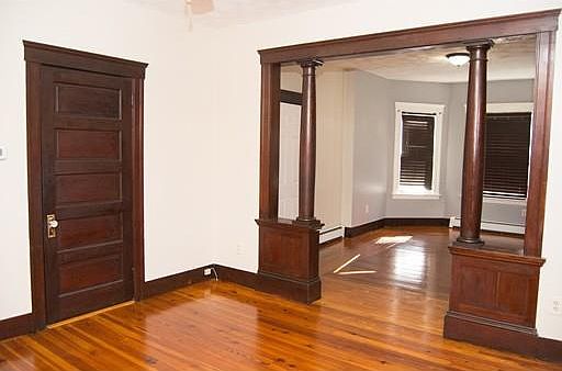 Big beautiful 1st floor unit on a quiet street with hardwood floors, built-in fixtures,matching wood panels and moldings , ceiling fans, dishwasher, custom microwave, huge dining and living spaces,off street parking located 1 minute from the park, close to major highways,bus route, train station, restaurant, stores, and colleges