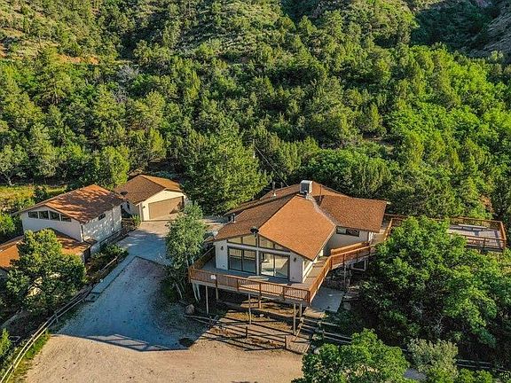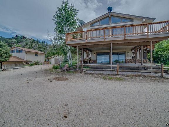 28 ACRES - SECLUDED Mountain home only 5 minutes from down town Canon City! Wake up to AMAZING, BREATHTAKING views of Pikes Peak. Lie in bed with the glow of city lights mixed into the clear view of the nights stars! Property includes a 1200 sq. ft.- 2nd home for a mother-in-law suite or a rental property. Large entertainment room/family room, with walk out sliders that open to a large concrete covered patio for your summer barbeques! OVER 1000 sq ft of outdoor decking to relax and enjoy the 360* VIEWS VIEWS VIEWS!! MUST SEE PROPERTY!!