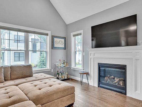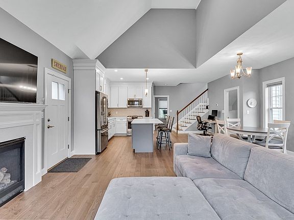 Magnificent 2021 built single family in a quaint South Easton HOA community. Property features two bedrooms, three bathrooms, a grand living room with vaulted ceiling & gas fire place open to the kitchen and dining. Gorgeous kitchen with island, gas stove, quartz countertops, white cabinetry, and stainless steel appliances. Main level includes a large bedroom and sleek bathroom with tub. Retreat to the second floor loft for the primary bedroom suite, complete with a walk in closet and luxuriously appointed bathroom with dual vanity & lavish glass enclosed shower. Brushed hardwood floors throughout. Large lower level with bathroom & shower provides extra space for guests, entertainment, and fitness. Basement also includes a laundry room with washer and drier and additional storage. Private fenced patio in the back and one garage & one outdoor parking. Additional amenities' include a community clubhouse and guest parking.