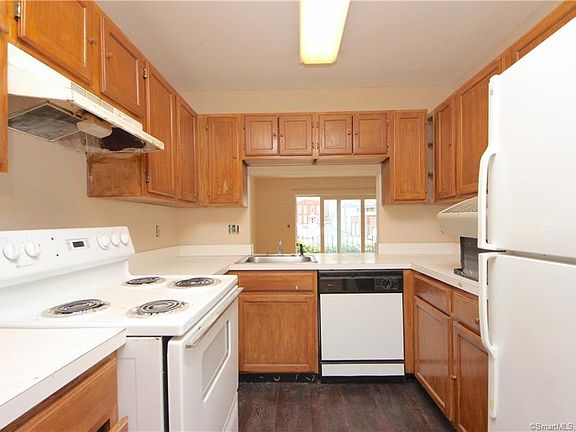 Beautifully updated 2 bedroom 1.5 bath townhouse in downtown of Danbury in a quiet and well maintained complex. Bright and spacious home with new hardwood floors throughout. Kitchen has granite countertops, new stainless steel appliances (fridge has wifi), breakfast bar and dining area. Living room has a lovely balcony to enjoy your coffee or wine outside with grapes growing in hand's reach, literally. Upstairs Master bedroom has 2 closets (his and hers) and an attached full bathroom. Stackable brand new washer/dryer are upstairs in the hallway. Unit has 1 assigned parking, but plenty of unassigned guest parking spots. Pets are allowed. This beautiful Liberty Terrace Complex is centrally located to everything - walking distance to train station and bus stops, shopping, restaurants, Danbury Ice Arena, library and more.