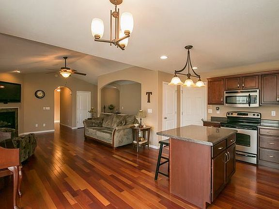Quality built home on corner lot with close proximity to school and interstate access. Inviting foyer, with 5 Bedrooms, 3 baths and large living spaces. Fireplace in both main living room and lower level family room. Wet bar in LL. Master suite on main flr. Large walkin closet. Mstr bath has tub and shower. Brazilian Cherry Hardwood throughout main floor. Sound system throughout home. Great price for the amount of sqft. A must see home!
