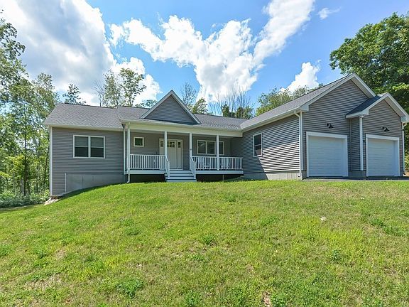 Are you looking for one-floor living? This newly constructed Ranch on a quiet country road, located on a tranquil 2 acre lot, offers a welcoming covered front-porch, open floor-plan, vaulted ceilings, & lots of natural light. This home is perfect for everyday life and entertaining, with a kitchen peninsula centered in the living space. White kitchen, ss appliances, and quartz countertops. Relax in front of the gas fireplace and enjoy the beautiful view of the tree-lined backyard. Dining area offers a slider with access to the composite back deck. Laundry area is perfectly located in a mudroom off of the garage. Main bedroom suite complete with a walk-in closet and a spacious full bath, tiled walk-in shower as well as a separate soaking tub & double vanity. Two more bedrooms and an additional full bathroom complete the main floor. Sprawling walk-out basement, plumbed for an additional bathroom, offers potential for additional living space. Energy efficient. Move right in. Welcome home!