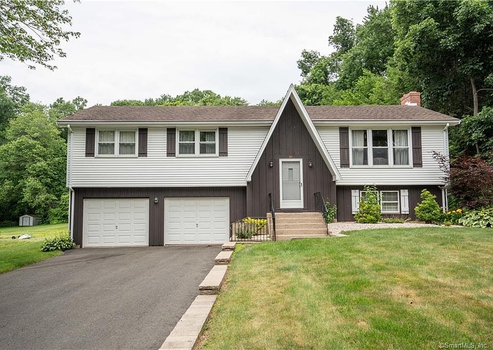 PRICE REDUCED for this wonderful 3 bedroom, 1 1/2 bath home in the heart of Windsor, a great opportunity for a smart buyer! This home stands out in many ways, from the beamed, vaulted ceiling that opens up the main living area, the shining hardwood floors, the brick and wood mantled fireplace in the living room, a spacious dining room that easily accommodates large gatherings, and a kitchen that has been updated with granite countertops, a large island with seating for an informal meal as well as space for meal preparation. Sliders lead from the dining room to a large deck overlooking an expansive backyard. There's a full remodeled bath with shower stall (no tub) off the main hallway leading to the 3 spacious bedrooms. The primary bedroom has a half bath. The partially finished, wood paneled lower level carries over the warmth and charm of the upper level. There's a second fireplace, a den or recreational space as well as space for a home office. The basement also houses a large laundry room with space for other uses (used as a sewing room by the seller). The gas boiler and water heater (both installed in 2013) are in the adjoining utility closet. The attached 2 car garage has plenty of extra room for storage. The deck, large open backyard and the quiet neighborhood location adds so much appeal to this very special home.