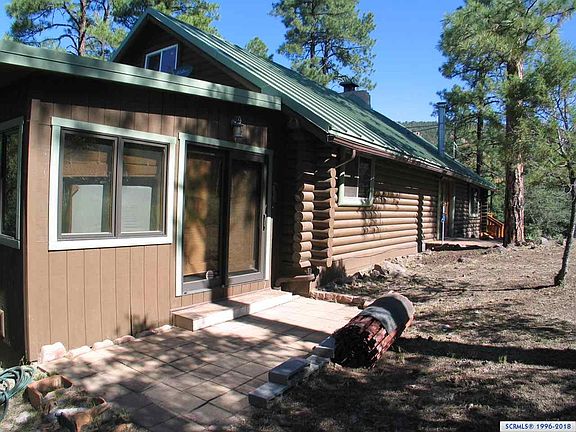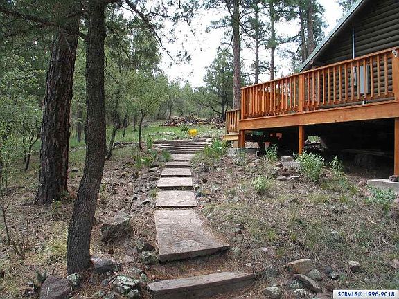 ANOTHER $10,000.00 REDUCTION!! Fantastic log cabin just off of Highway 15 headed toward the Cliff Dwellings. This wonderful property has some of the most stunning views in the southwest with direct paved access off of Highway 15. The property is on a community water system, and septic system. Spend your evenings on a huge deck on the front of the cabin with tall pine trees all around. Go in the front door to a vaulted ceiling with a gorgeous chandelier complementing the space and a real fireplace. Around the corner is a wood stove to warm up the dining area as well as the renovated kitchen with custom counters and cabinets. Two bedrooms complete the house in the tour and onto a spa room that can double as a workspace, or a sunroom, whatever you want it to be. the real third bedroom is located up a stairway and has tons of storage. Outside is wonderful and full of wildlife and forest. This is a spectacular property that can become a getaway, a second home, or live in it full time.