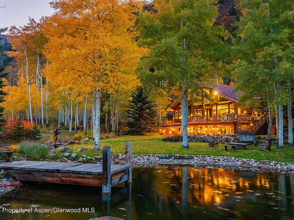 Discover the pinnacle of refined mountain living at this extraordinary estate, where private serenity meets unparalleled convenience. Positioned just 10 minutes from downtown Aspen on over three acres of wooded tranquility, this remarkable property features a large pond with dock, running stream, and senior water rights—offering a rare balance of mountain seclusion with town accessibility.