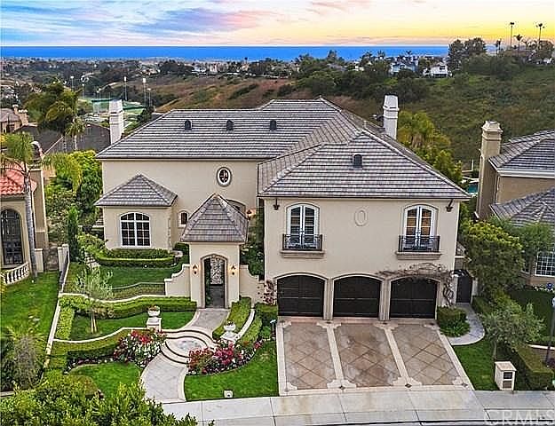 Charming Estate with Coastline Views! Nestled within the prestigious guard-gated community of Ocean Ranch, this breathtaking residence features 5 bdrms, office, bonus room & 5.5 baths. Manicured landscaping, courtyard, wrought iron balconies & stone archways add to the curb appeal. Grand entry with elegant office/library, living room with stunning views, fireplace, & formal dining room. Extra wide crown molding, coffered ceilings, custom built-ins & detailed architecture add ambiance throughout. Prepare tasty meals in the gourmet kitchen with center island. Gather or relax in the separate family room with cozy fireplace & wet bar. Ideal main floor bedroom is perfect for guests or in-laws. Oversized master retreat features a romantic fireplace, sparkling ocean views, private balcony, his/hers closets & spa bathroom with steam shower. Three other spacious secondary bedrooms complete 2nd floor. The bonus room features breathtaking ocean views, a wet bar, and it could be converted into a media room. Enjoy the California lifestyle with outdoor kitchen complete with built-in BBQ, fridge+sink, custom pebble tec pool with waterfall/bubbling spa, putting green, & a backdrop of pano coastline views. Ocean Ranch amenities include a pool, outdoor gathering area, playground and basketball court. Blue Ribbon Award winning schools, a variety of shops/restaurants/entertainment, an abundance of outdoor recreation and 5 star resorts are all nearby! Only 2.5 miles to Salt Creek beach!