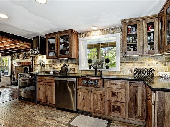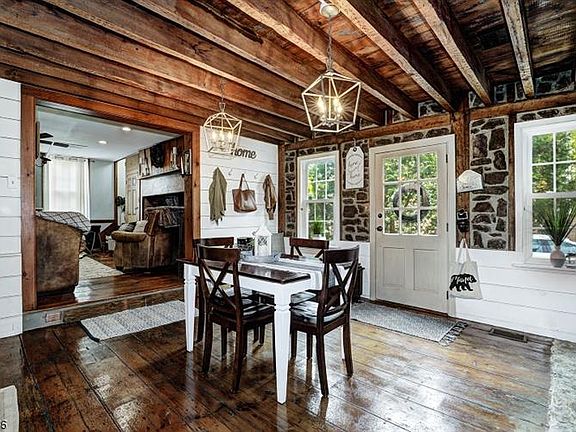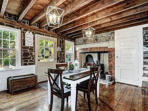 Beautiful historic home, superbly maintained and extensively updated. Located in a quaint village in Alexandria Twp. Featuring exposed stone walls, rustic beams, and chic fixtures. Stunning kitchen! Kitchen boasts custom cabinetry, granite, and high-end SS appliances. The first floor has an open layout that flows nicely. Ample closet space throughout the home for plenty of storage, a rare find. There are also 3 fireplaces, wide plank floors, original woodwork, and beautiful vintage built-ins. Master BR w en suite bath, french doors to an office sitting room, a stone wall, and balcony overlooking the idyllic backyard. Other features: an additional sitting room den on the second floor, 2 Jersey-winder staircases and well appointed front staircase with charming character. Also new central AC installed this year.