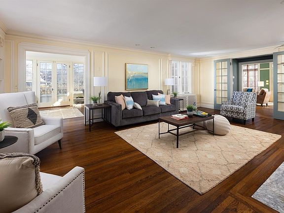 Set on a corner lot with magnificent grounds on one of Waban’s prettiest streets, this elegant Colonial-style Dorset Circle home is spectacular. The open foyer leads to a large living room with beautiful original moldings and a fireplace, a dining room that opens to a spacious kitchen with a separate breakfast area, and the piece de resistance is a fabulous bright and light family room addition overlooking the lush and expansive backyard, almost half acre lot with a charming patio. Also on this level is a paneled library, with fireplace, and oversized sunroom/office. The second floor has an expansive primary bedroom suite with a bathroom, two other sizable bedrooms, and two bathrooms (one ensuite). The third floor has a generously sized fourth bedroom with a bathroom. There is a huge partially finished basement. This home has beautiful period details, lovely hardwood, a slate roof, gas systems, AC, and detached 2-car garage. It is near the Angier School, the “T”, and major routes.