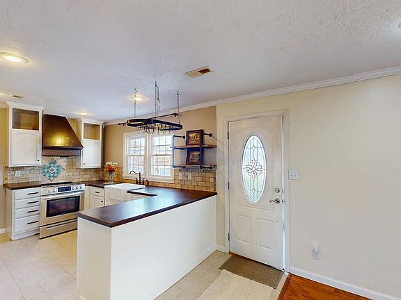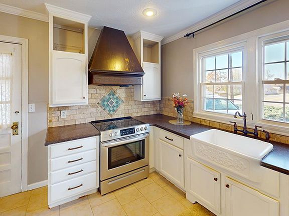 Character and Charm is what you will find in this cozy 2-bedroom brick home. Original hardwood floors are featured throughout most of the living areas, with tile in the kitchen and bathroom. The spacious living room has a fireplace with gas logs and crown molding. There is an office/den area that could easily be a 3rd bedroom. The kitchen has been updated and has several cabinets and ample counter tops along with a deep farmhouse sink. New refrigerator. New shower in the bathroom and a new door going into the laundry room. There is a large deck on the back with a covered area and an open area for grilling. The large backyard is fenced and also features a chicken coop area. There is plenty of room for a garden. The detached brick building has electricity and is perfect for a potting shed or storage.