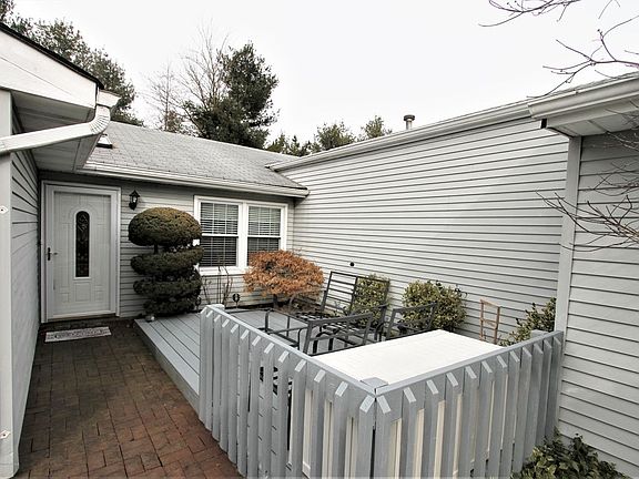 Welcome to a meticulously maintained, open airy ranch w/large rooms , & plenty of outdoor rm both in front & rear yd. Charm & character both within & outdoors from secluded front deck, beautiful landscaping ,paver walkway& patio overlooking one of largest lots in development. Inside your new home features gorgeous cherry laminate flooring in hallway, kitchen. Plush w/w in living room/diningrm area, ,both bedrms. Nice sized hallway has skylight for more light.2 sets of sliders in livingrm & diningrm lead out to rear yd & also offer light. Good sized master bdrm. Kitchen has white cabinets, stainless appl, most 2 yrs.. Dryer 5 yrs. All ages welcome.& no maintenance fee. Great location near shopping & rt. 9 bus.Freehold twp high school. Truly the house w/o the homework! Come on down.