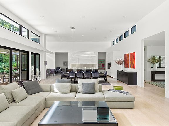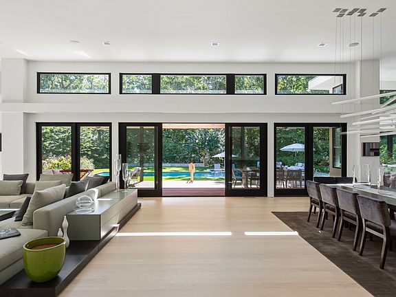 Rental Registration #: # 21-1154 Gated, private, newly constructed sanctuary, situated on two sun kissed acres. Enter through the automatic gates that lead you to a two car garage. Notice the quality of the build as soon as you walk up to the stone and wood exterior. Upon entering the large glass doors of the foyer, you'll notice the perfect symmetry highlighted by the morning sun peaking through the glass and metal frame rear exterior of the house that showcases the grounds designed for relaxing. The living room has a fireplace with large L shaped sofa and a glass corner that creates a perfect frame for the manicured landscaping. On the opposite side sits the chefs kitchen, with a breakfast bar, dining room, and built in breakfast nook. These connected rooms have sliders that open to the covered deck with patio dining, grill, and fans for warm summer nights. The L shaped pool has two lounge chairs built in a soaking section with an umbrella. The first floor primary suite has a walk in closet, glass sliders leading outdoors, exquisite minimalist master bathroom with oversized double stall shower. Bonus living room, office, hidden butler's kitchen with washer/dryer, and two en-suite guest bedrooms with a connected deck complete the first floor. The lower level has an entertainment area, a gym, two en-suite bedrooms, and an additional washer/ dryer. A Must see. This location is convenient to East Hampton Village and Sag Harbor Village. Live in this private sanctuary with the convenience of the village and beaches.