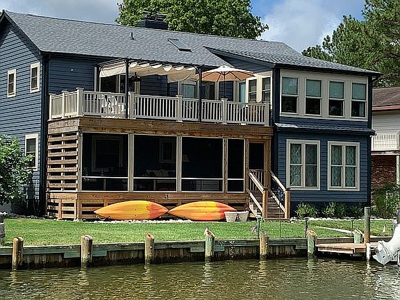 Direct River Access from this Spacious 3 or 4 Bedroom home located on a very wide canal. Relax on the Rear Deck or Sun Room! Cathedral Ceiling, Skylight, & floor-to-ceiling Brick Hearth Fireplace in Living Room. Kitchen has HW floors, Desk, Brick Wall & Breakfast Nook. Finished Walk-in Attic with Skylight, plus 2nd attic area and a storage shed. Central Vacuum, beautiful interior doors & utility sink in huge garage! 24x24 Family Room with Wood Stove & Wet Bar. New Roof in 2016. New Heat Pump in 2015. Private Boat Dock with Lift. Fully Furnished Too!