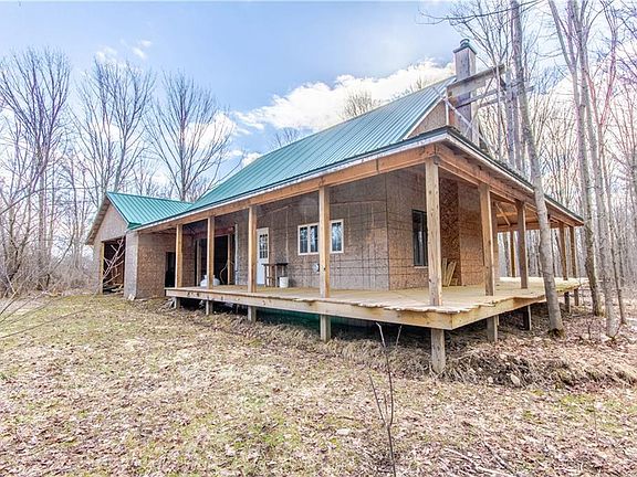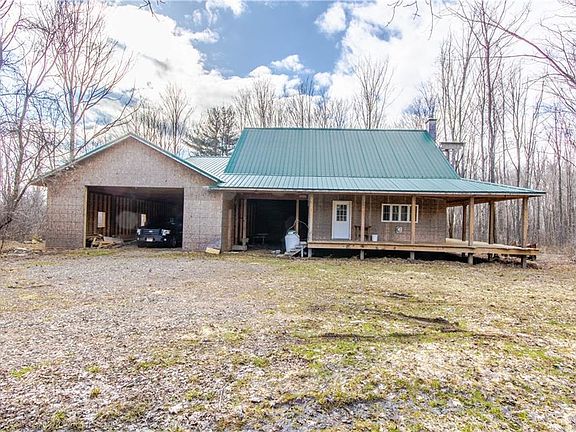 Great opportunity to complete this vacation or year-round secluded home but just minutes to downtown Pulaski and on 43 wooded acres with pond its great for hunting or a great return spot after fishing and snowmobiling. The house comes with wrap around porch and huge attached garage. The quality construction on this enclosed but unfinished home offers a unique opportunity for someone or a group to purchase and finish their dream getaway home or camp. The inside offers large living area with new wood stove, cathedral ceilings and loft space are absolutely amazing.