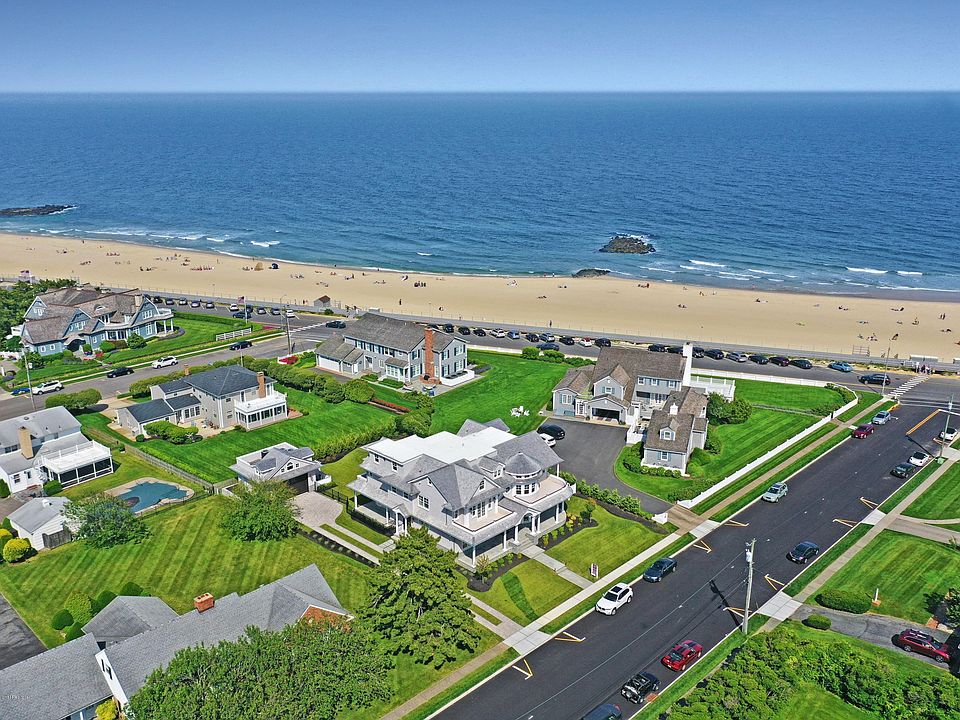 This beachside estate with panoramic 180-degree views of the Atlantic shoreline rivals the character and architecture of the Hamptons without the commuting hassle. This exquisite home is a direct train ride to New York City from the station right in town, or a convenient car ride to the cities of New York and Philadelphia. A helicopter can whisk you to your office in under half an hour, or one of the local ferries can take you to lower or midtown Manhattan. Blending breezy coastal elegance, luxurious details, and thoughtful design, 10 Lorraine Avenue offers refined class in a relaxed and casual setting. The light-filled, open-plan layout, flanked by enormous