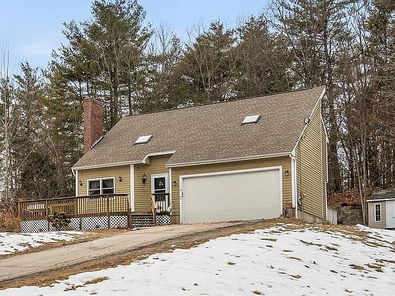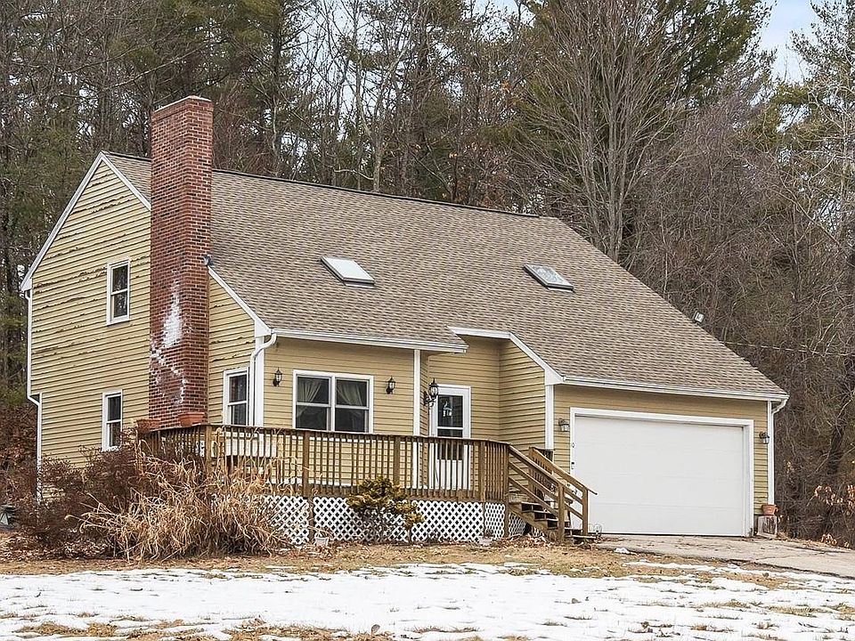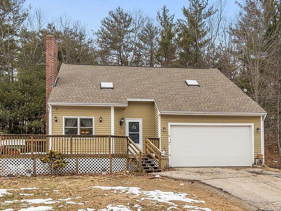 DREAMING OF A COUNTRY RESIDENCE ON A PRETTY WOODED LOT? OPPORTUNITY KNOCKS WITH THIS UNIQUE CONTEMPORARY! Set back from the road in a desirable neighborhood, ascend to the welcoming front porch and enjoy morning coffee as you take in pretty sunrise views. As you enter you’ll appreciate skylit soaring spaces as well as a dramatic staircase and open mezzanine balcony. Guests will warm themselves by the two story brick fireplace as they gather to watch the big game. Grab hors d'oeuvres from the kitchen filled with oak cabinetry and a dedicated pantry or enjoy seated meals in the adjacent dining room which is perfectly proportioned for entertaining. The family room waits for your special touches or convert to a first floor office ideal for today’s work-from-home. Through sliding glass doors you’ll spy an elevated deck which enjoys changing seasonal views of stone, woods and sky in your backyard. After a day on nearby Island Pond or the Rockingham Rail Trail, retire upstairs to the primary bedroom with walk-in closet and directly access the spa-like bath enrobed in rich wood paneling. Soak your cares and stress away in the sunken tub and rest easy knowing that two additional sizable bedrooms will make everyone happy. Did we mention the finished basement features a fun rec room complete with bar, numerous thoughtful built-ins and desk area as well as another bedroom with walk-in closet? Talk about versatility! LIGHT, BRIGHT AND SOARING…YOUR STORY BEGINS WITH THE TURN OF A KEY!