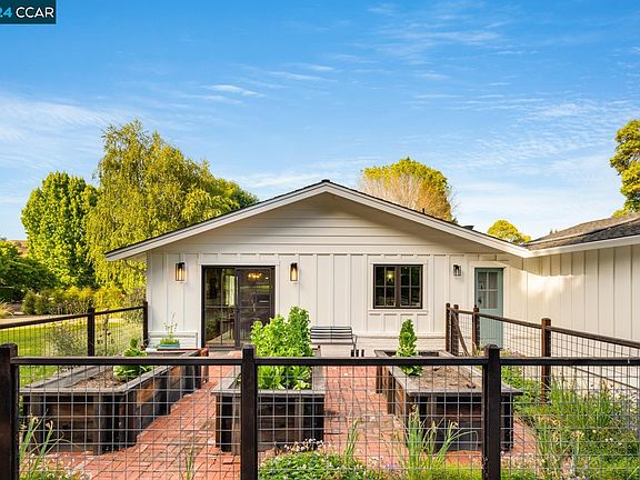 Welcome to this charming Ranch style home, nestled within one of Westside Alamo’s most esteemed neighborhoods. This spacious half-acre corner lot features a circular driveway. The backyard has a sparking pool, putting green, cozy fire pit & garden beds. Front porch welcomes you into the living room and formal dining boasts panoramic windows & a striking white brick fireplace. Gourmet kitchen is a chef’s delight, with newly refinished warm white cabinetry, granite countertops, modern appliances, a generous island and a built-in desk area. Adjacent, the spacious family room offers versatility with an additional flex space, perfect for work or relaxation, convenient half bath with backyard access. Three secondary bedrooms & 2 secondary bathrooms, one of which features an attached bonus room. The primary retreat offers serene backyard views & vaulted ceilings. Spa-like bathroom, featuring an oversized tub, a separate shower & a walk-in closet complete with a custom closet system. Additional highlights include a well-appointed laundry room, an oversized garage, ample storage space & solar panels for the pool & home. Conveniently located near top top-rated schools, parks, the Iron Horse trail, and Las Trampas hiking, w/ easy access to the freeway, shopping and dining destinations.
