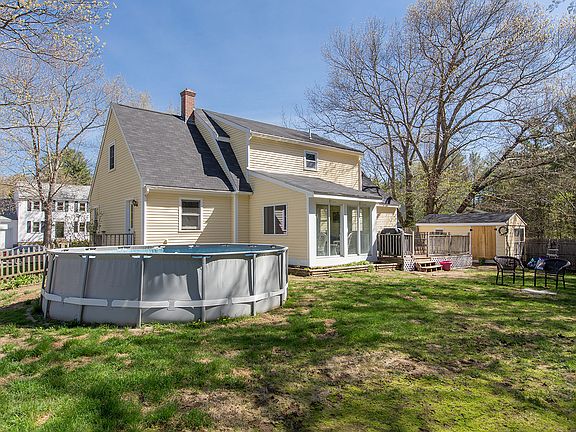 Bright and cherry 3 bedroom cape in much sought after Exeter cul de sac Louisburg Circle neighborhood, minutes from downtown Exeter. This well maintained home has a freshly painted interior and exterior along with newly refinished wood flooring. There is lots of first floor plan versatility for your buyers offering formal living room, family room, den, first floor office and dining room and kitchen with pantry. Three bedrooms up and full bath. Nicely situated sun room overlooking fenced in yard with patio, handy shed and above ground pool. One car attached garage and plenty of space in basement for storage or future finishing. Close proximity to shopping, highways and schools.