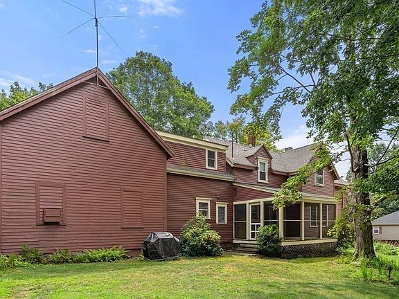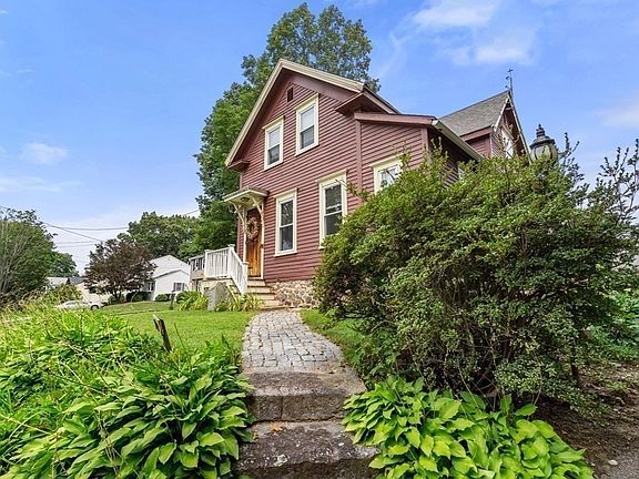 Absolutely charming village colonial that's sure to win you over. This home is set beautifully above the street with mature trees and a large yard, it has an attached garage/barn with a second story. The open country kitchen has real wood paneling and a brick fireplace with a pellet stove, you will find plenty of space for preparing and enjoying, there's a bay window and good size area for a big table, set off the kitchen is a huge family room with high ceilings and gorgeous hardwood floors, an office and den. On the second level there are four bedrooms and one full bath along with a. second staircase.Just off the kitchen there is a beautiful screened porch overlooking the yard. The home is a legal two family however it currently lives and works as single family. The buyer that is interested can easily convert it back to a two-family with a little work or leave it as-is. Full basement with bulkhead access.