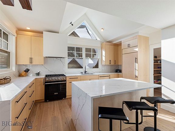 This fully furnished ski condo seamlessly blends Scandinavian design with modern luxury. Recently remodeled, it exudes warmth and sophistication, creating a welcoming ambiance that complements the stunning down valley mountain views of the Gallatin Range in one direction and Spanish Peaks views in the other.
