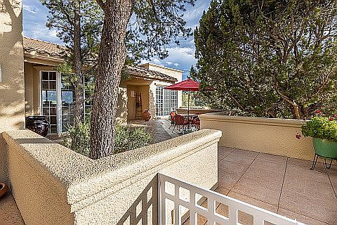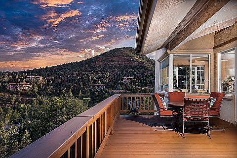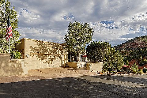 A timeless floor plan with the enchanting look of a Coffee Pot Cottage. Relax, kick off your shoes and watch the moon rise over the Mogollon Rim from your Deck, Living Room, Den and Master Bedroom! This single level gem is a Don Woods, Architect, custom built home is located on a high, panoramic view lot with incredible red rock views. Mature native pines cover this very private lot. Exterior features: Stucco, new roof 2022, beautiful front terrace, covered rear deck capturing awesome red rock views. 2 car garage with built-in cabinets, storage and work bench. Trane A/C and FAG furnace, April Air filter, humidifier, water softener. Interior: Cathedral ceilings. Tongue and Groove with 10x6 rough sawn wood beams. Custom upgraded built-in cabinets, and bay window built-in desk. Over size gas/wood fireplace. Kitchen: Cabinets, pantry, granite counter tops, island, wine cooler, under counter lighting, stainless steel appliances, dual stainless sink, r/o system, gas stove. Bay window with entry to terrace. Laundry Room: Built-in custom cabinetry, granite counter tops, stainless steel sink, sky light, 2 storage closets. Master Suite: 6x14 walk in cedar lined closet. Slider to rear deck. Master Bath: walk-in shower, jetted tub, granite countertop, dual sinks, upgraded bronze hardware, skylight. Guest Suite: Walk-in closet, bath with walk-in shower, sky light, Basement: 12x12 concrete flooring, shelving for storage. Sellers are retired licensed R.E. broker and agent in the state of Arizona. Shown by appointment only. call: Tom, 928 300 0200.