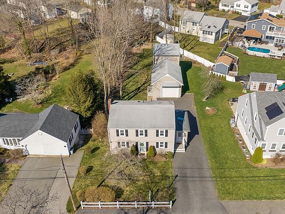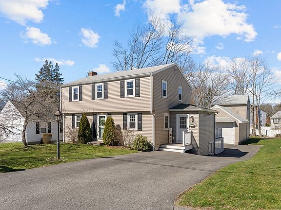 Wonderful sun filled home in great neighborhood. Newly remodeled kitchen with quartz counter top ,breakfast bar, white cabinets and stainless appliances opens into the dining room- which features a coffee station and beverage fridge- perfect for entertaining!. Newer mudroom addition with custom built in closets, skylight and door out to 12' x 21' backyard deck. Spacious living room with gleaming wood floors and fireplace. Great primary bedroom with walk in closet, 2 additional large 2nd floor bedrooms with lots of closet space. Updated bathrooms, Central air, finished playroom in lower level & updated electrical, great storage space too. Amazing yard with 25 x 36 ft patio with shaded area for a backyard barbeque. 19' x 50' garage with a 2nd floor makes great space for a gym, golf simulator, multiple cars, boat building, wood working shop etc. Additional storage area off the garage. The many updates make it easy to move right in and call it home!